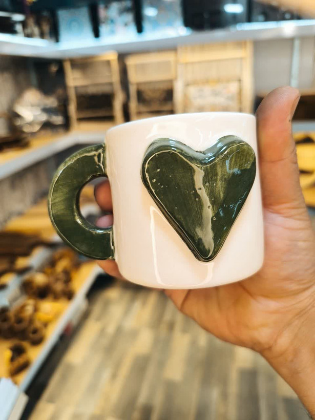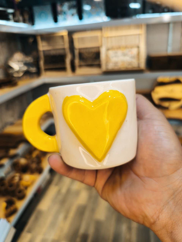 ماگ دستساز قلب برجسته سرامیکی طرح آبرنگی