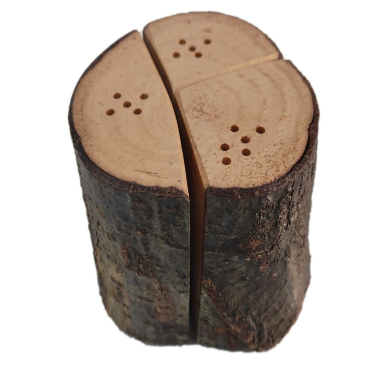 نمکدان ها در واقع شاخه یا ساقه درخت برش خورده بدون تراش بر روی ظاهر آن هاست که نمایی خاص و زیبا به آن بخشیده است و دقیقا ساقه های درخت را در مقابل خود می بینید. در قسمت کف نمکدان ها یک درب پلاستیکی تعبیه شده، کافی است آن را بر داشته و نمکدان ها را پر نمایید.