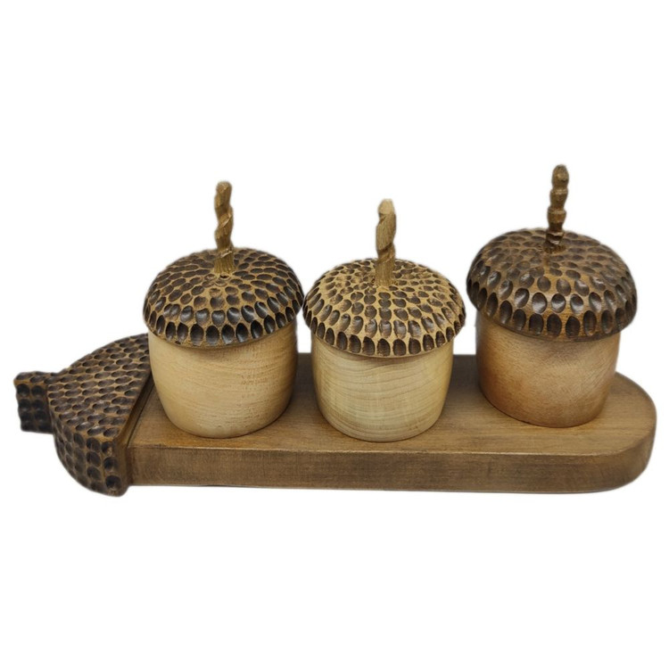 تخته سرو و سینی طرح بلوط به همراه سه عدد قندان طرح بلوط از آن دسته محصولاتی هستند که جهت چیدمان منازل، تزئین میز پذیرایی و آشپرخانه مورد کاربرد هستند.
