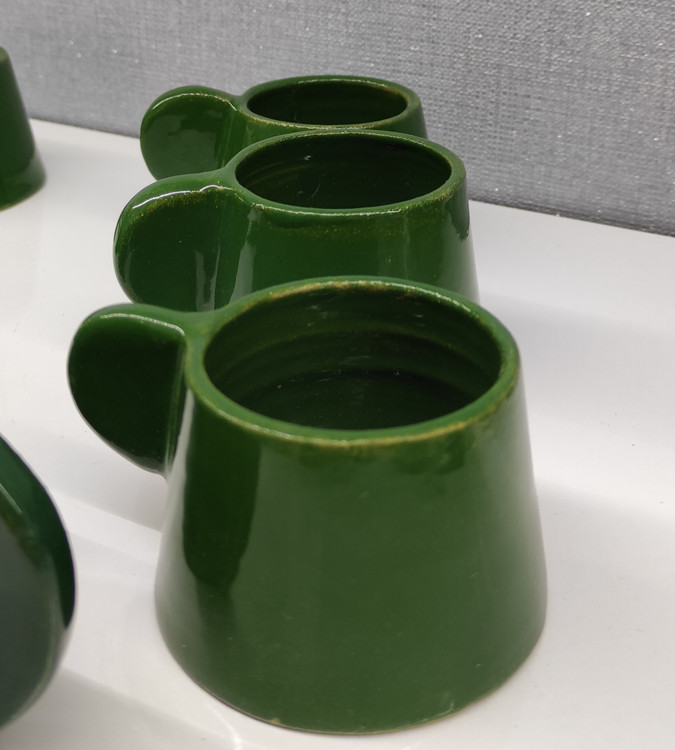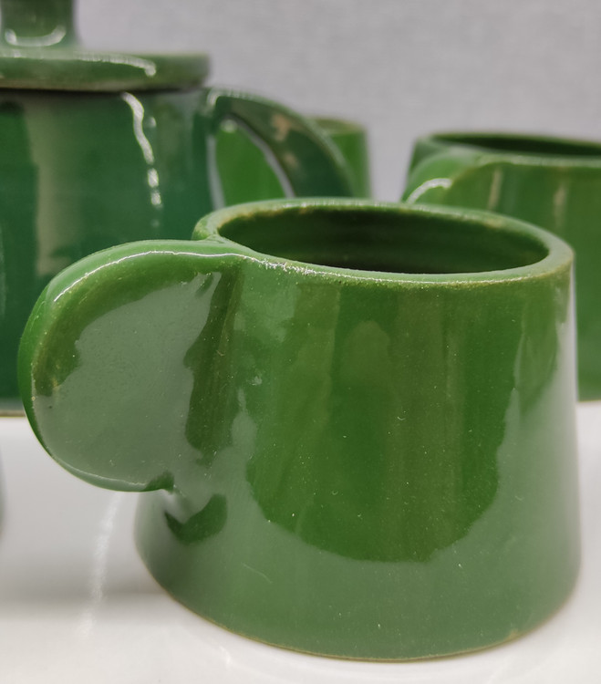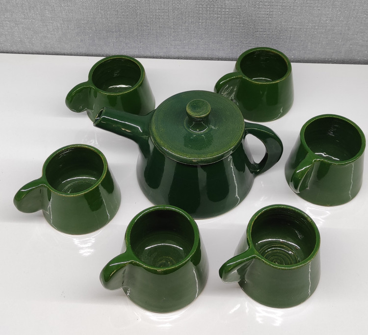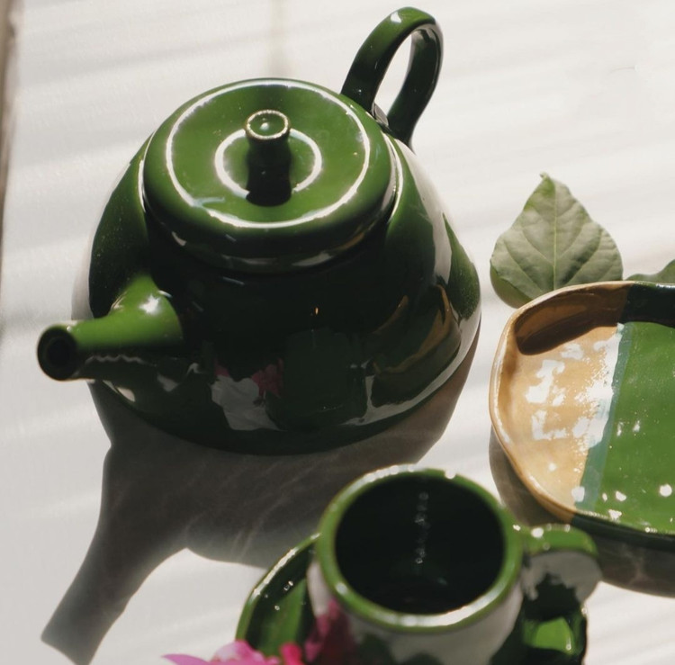 سرویس چای خوری ۷ پارچه سرامیک پرسلان دستساز رنگ سبز | ۶ فنجان + ۱ قوری