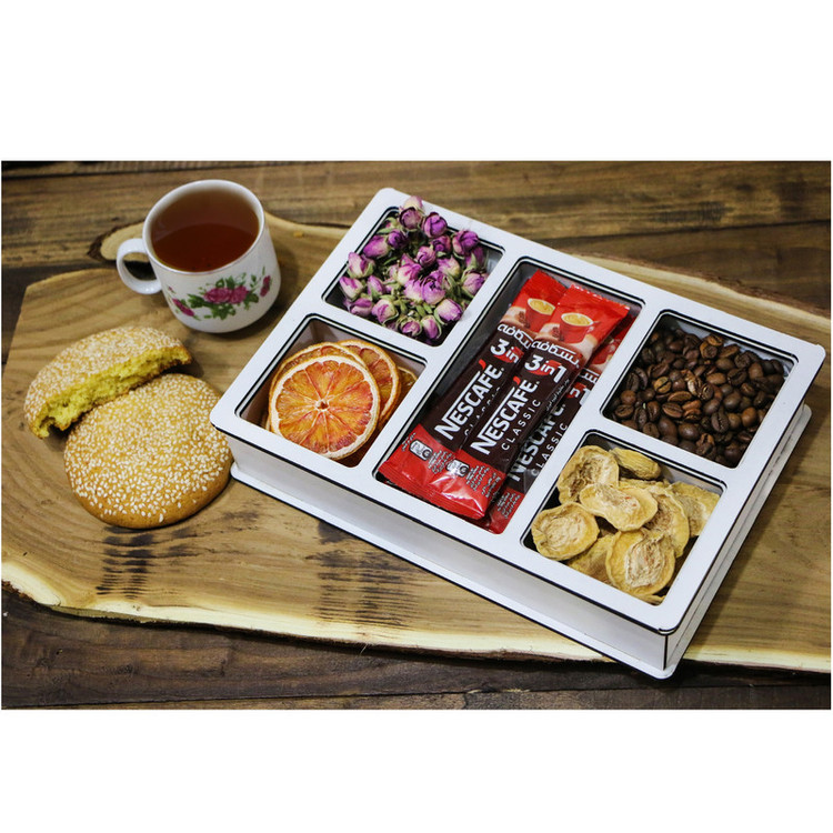 یکی از وسایل نفیسی که ظرافتهای آن هر بینندهای را به خود جذب میکند. همچنین جعبه پذیرایی را میتوانید به عنوان کادو یا هدایای تبلیغاتی به دوستان یا آشنایان خود اهدا کنید. اندازهی آن به گونهای است که به راحتی داخل کشو محل کار ، آشپزخانه و یا روی میز پذیرایی جای میگیرد و در زمانهای مختلفی میتوانید مواد داخل آن را مورد استفاده قرار دهید.