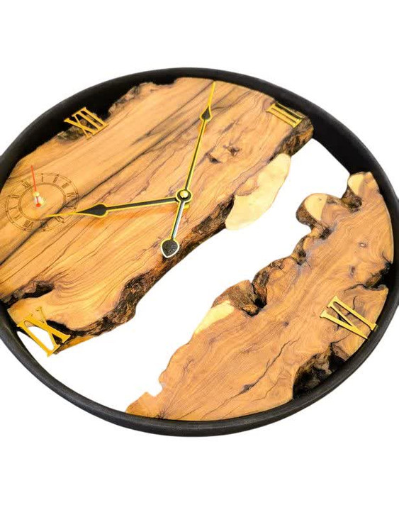 ساعت دیواری چوبی روستیک قطر۴۰سانت چوب زیتون دوموتوره خاص موتورتایوان اصل