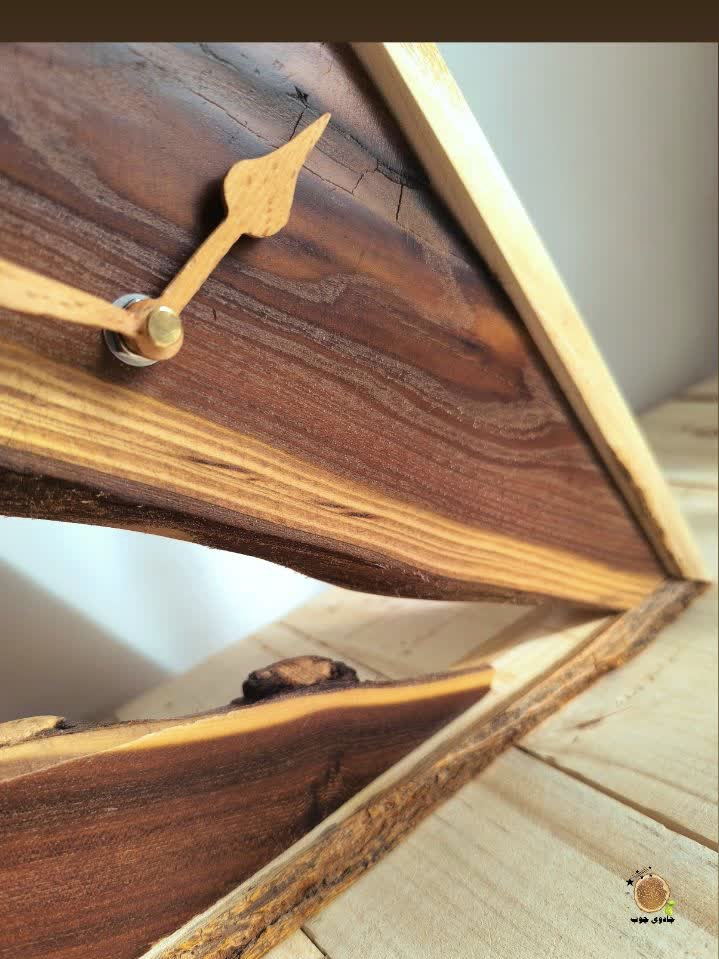 ساعت دیواری چوبی مثلثی دستساز | فریم چوب توت + صفحه سنجد | موتور درجهیک و کیفیت بالا