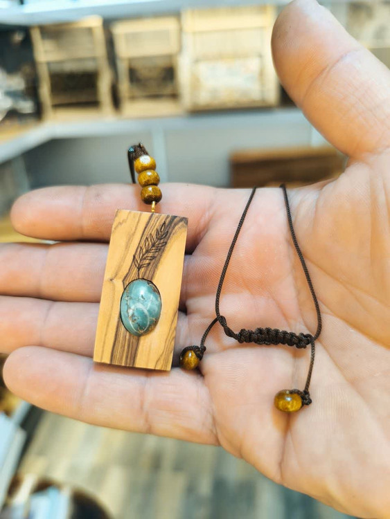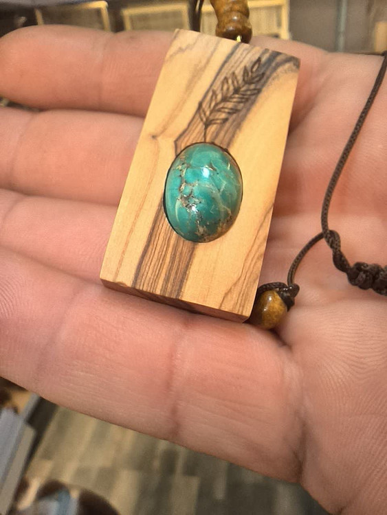 یه کار ترکیبی از چوب ماورایی وخوش نقش زیتون و نگین فیروزه نیشابور که به زیبایی کنار یکدیگر چیدمان شده اند.