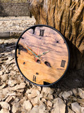 ساعت روستیک تمام صفحه با نمای جذاب وهزارنقش وعقربه های فلزی طرح پیک و اعداد چوبی دستساز به رنگ مشکی که کاملا با صفحه ساعت ست هستند