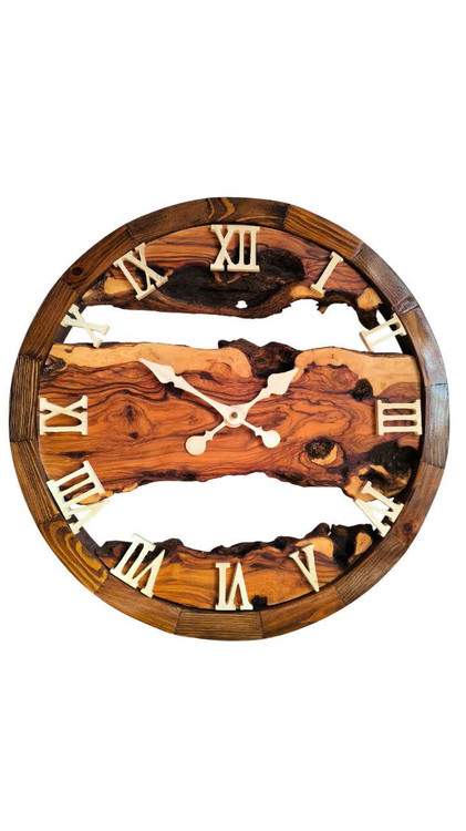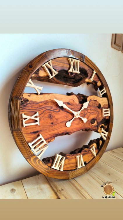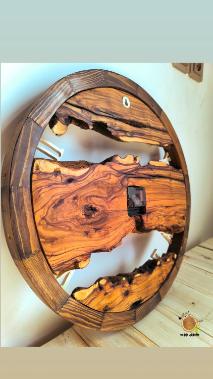 صفحه این ساعت از سه تکه چوب جنگلی زیتون ساخته شده که نقش ونگار آن جلوه این ساعت رو چندبرابرکرده