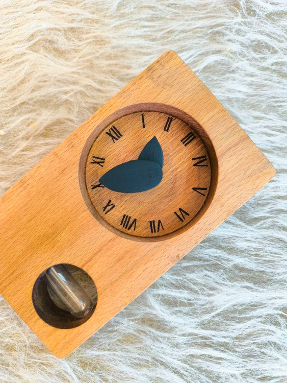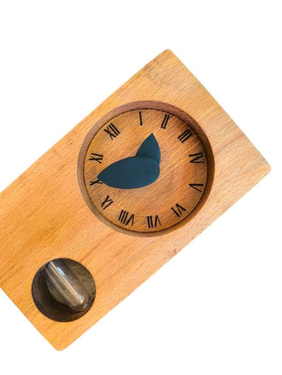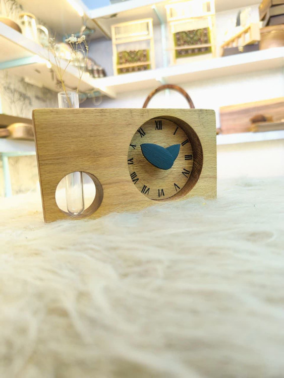 ساعت رومیزی چوبی ساخته شده از چوب راش با گلدان شیشه ای نمایان،موتورآرامگرد ،ارسال سراسرایران ،کیفیت ساخت بالا،قیمت تولیدی مناسب
