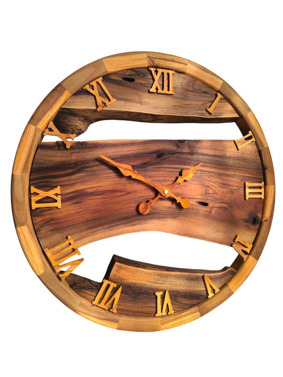 ساعت روستیک دیواری تمام چوب قطر۵۰سانت ترکیب درخت نارون وگردو