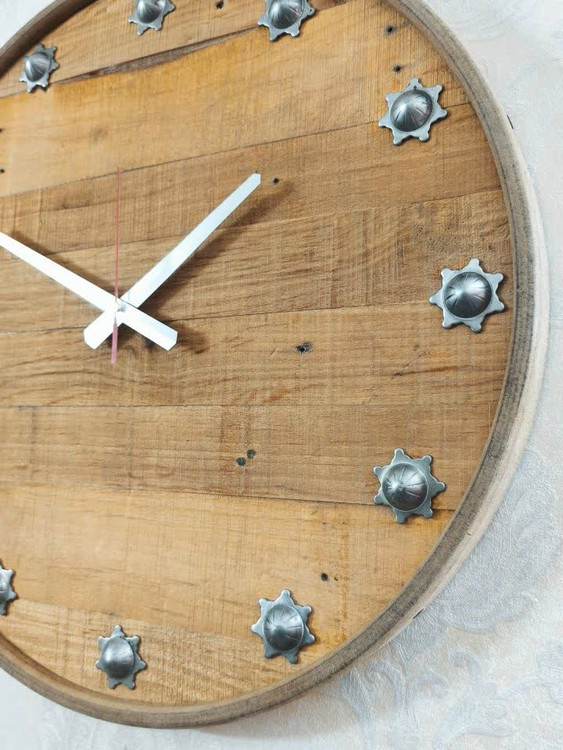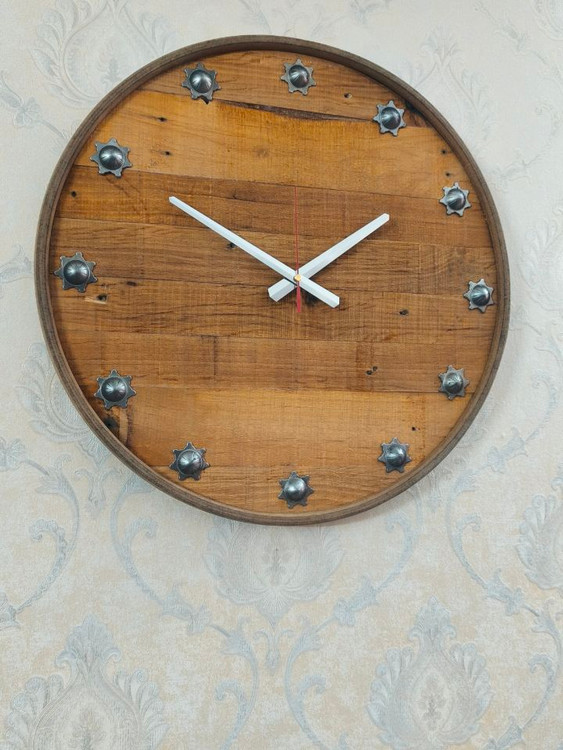 ساعتی تمام چوب با قطر ۵۰ سانتیمتر که هر جزئیات آن با هنر کهنهکاری استادانه طراحی شده است.