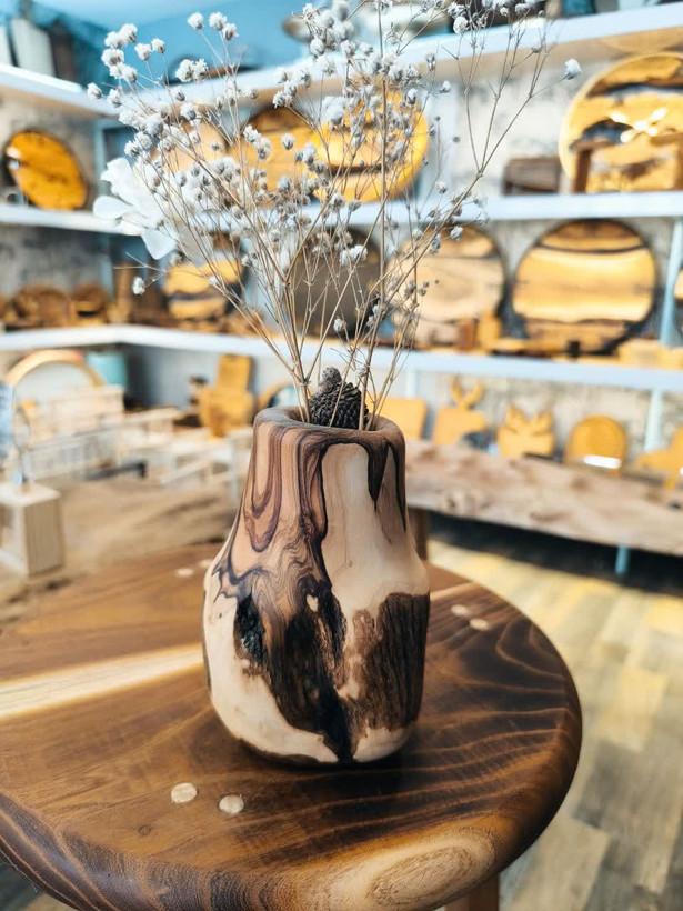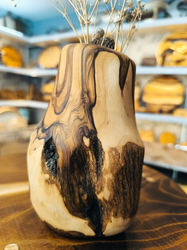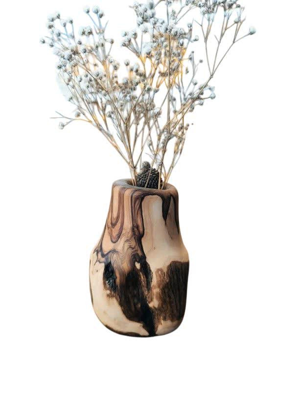 گلدان چوبی روستیک چوب خوش نقش جنگلی زیتون دستساز