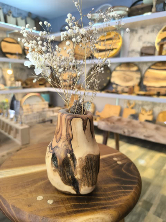 گلدان چوبی روستیک چوب خوش نقش جنگلی زیتون دستساز