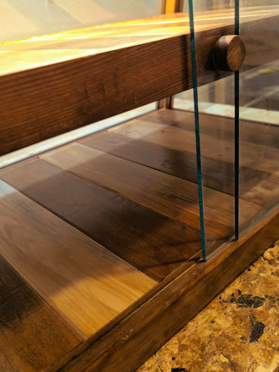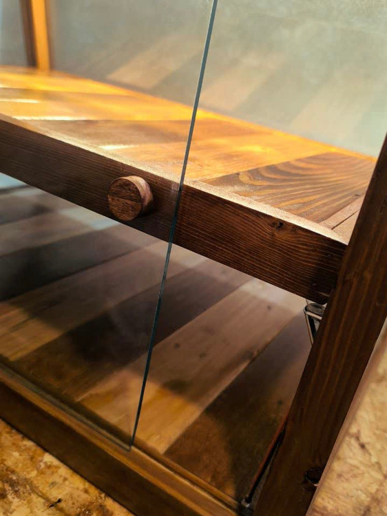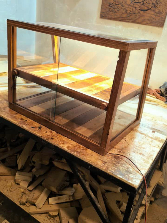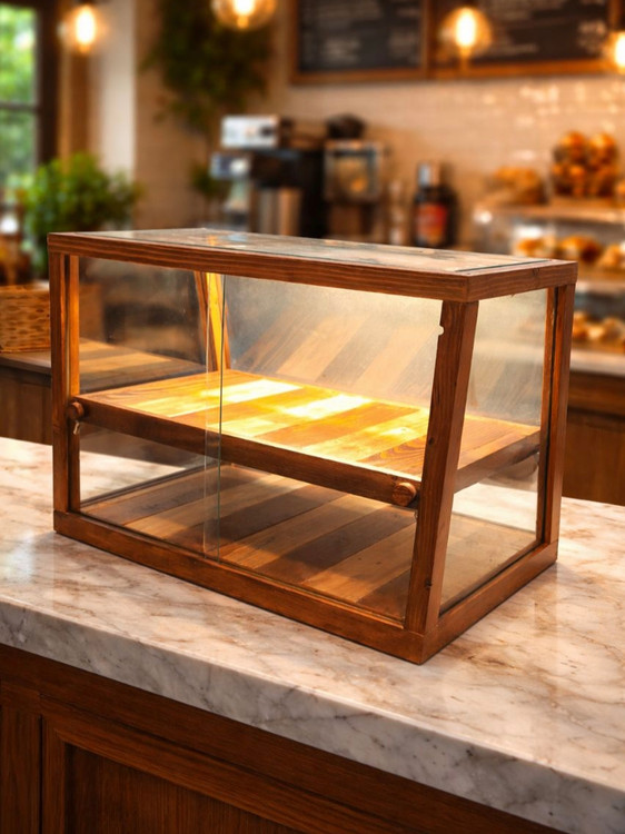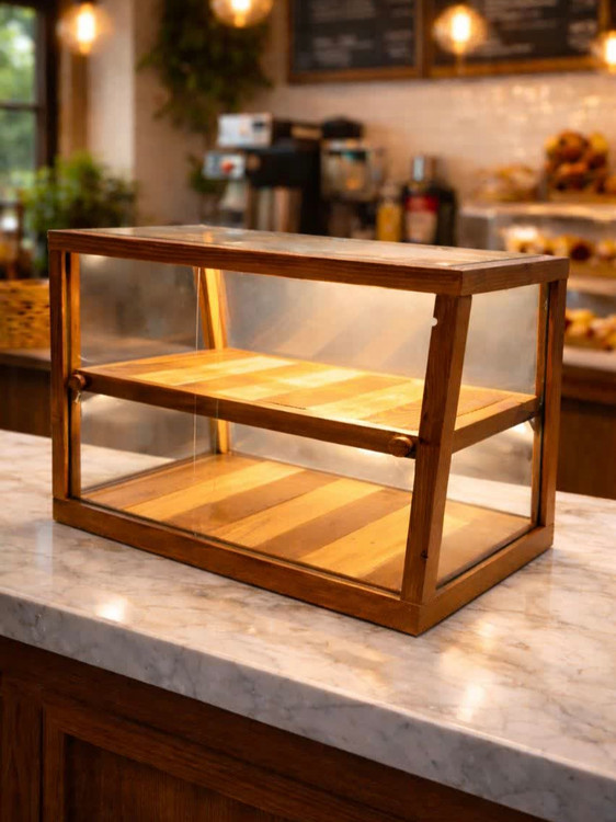 این ویترین کیک با بدنه چوبی طبیعی و شیشه شفاف طراحی شده تا محصولات شما به بهترین شکل دیده شوند.