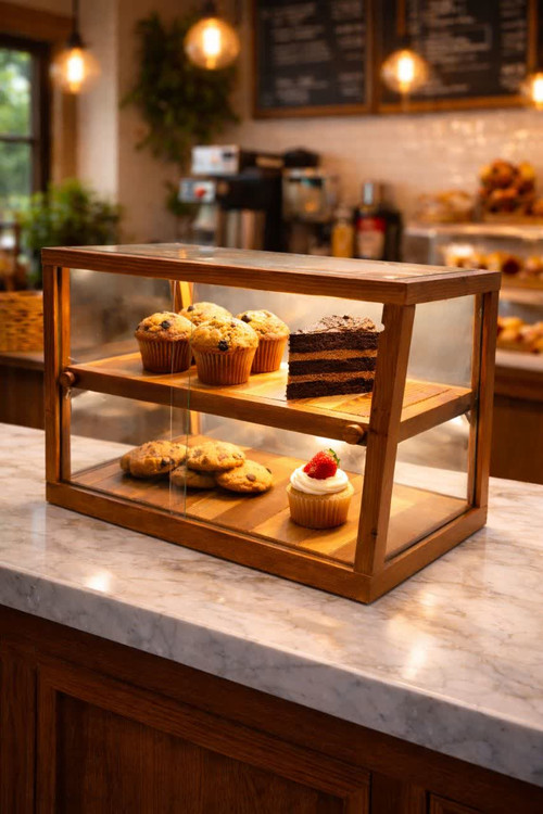شوکیک چوبی دستساز یک انتخاب حرفهای و شیک برای کافیشاپها، نانواییها و قنادیها است که به زیبایی فضای فروش شما کمک میکند.