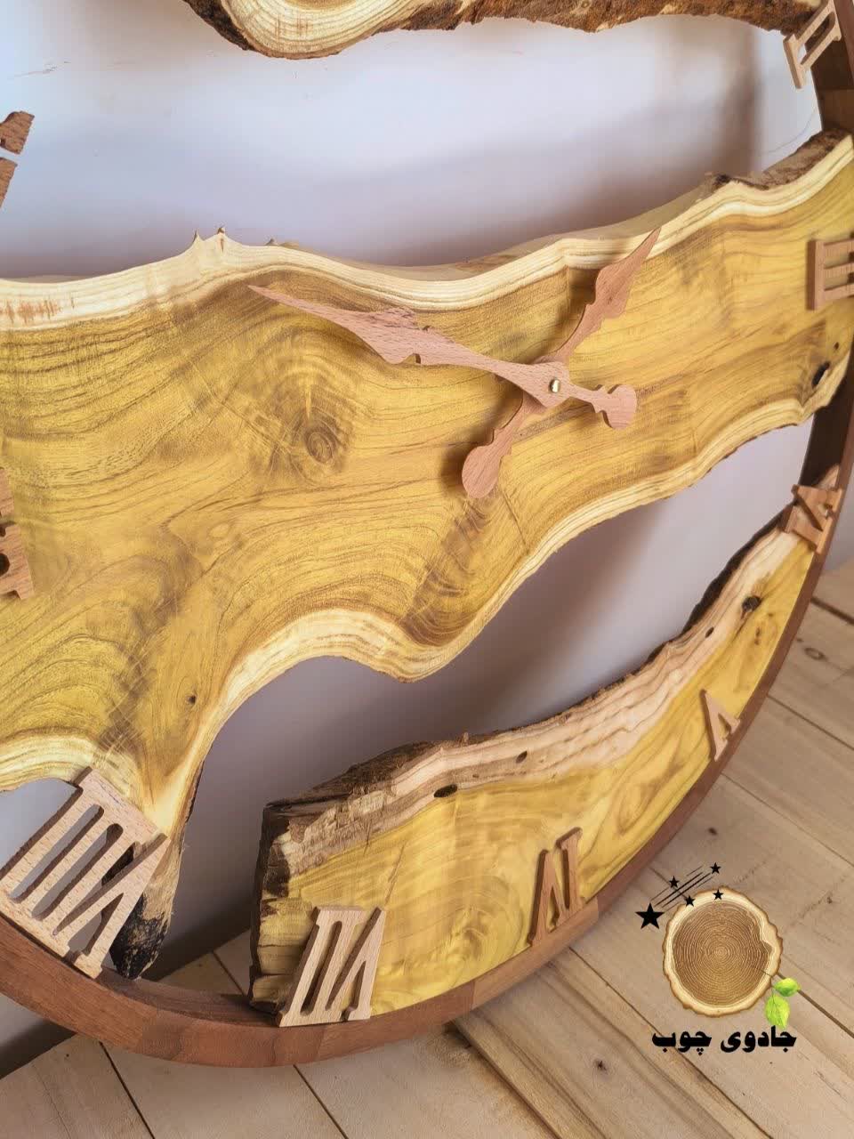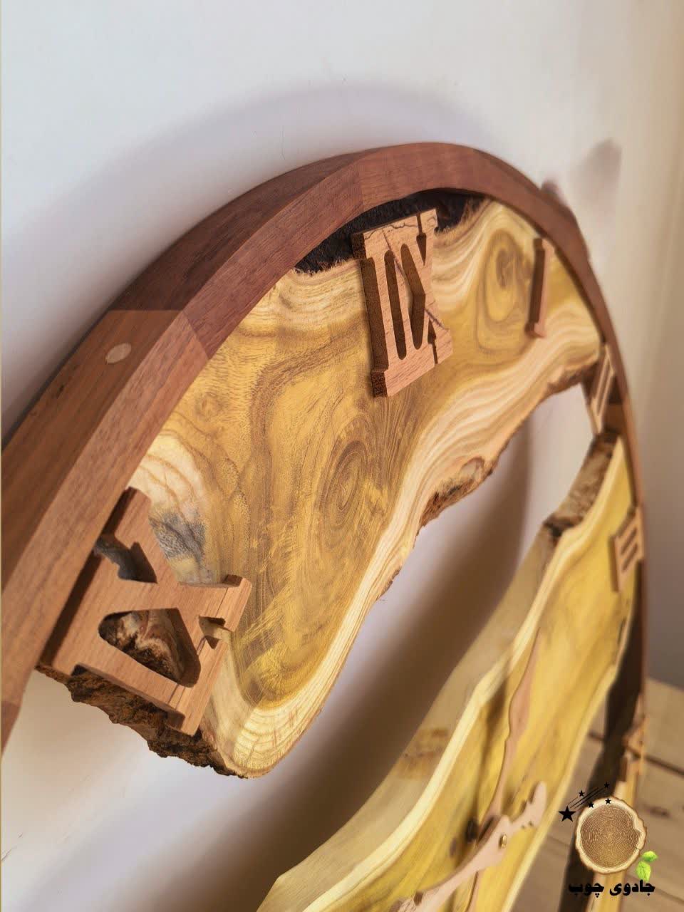 ساعت دیواری «رودِ طلایی» ترکیبی هنرمندانه از سه چوب اصیل است؛